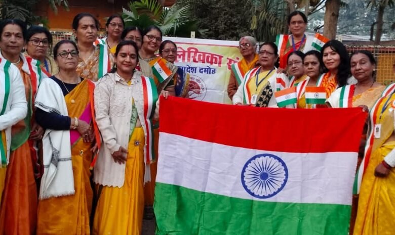 दमोह। गणतंत्र दिवस पर हिन्दी लेखिका संघ दमोह का काव्यांजलि कार्यक्रम आयोजित किया गया। कार्यक्रम की अध्यक्षता पुष्पा चिले ने की। विशिष्ट अतिथि डॉ प्रेमलता नीलम रहीं। मां सरस्वती के पूजन, वंदना के उपरांत कवयित्रियों ने देश भक्ति से ओत-प्रोत रचनाओं की बौछार कर सबको गदगद कर दिया। पुष्पा चिले सीमा पर जो अडिग हों,प्राण करें आहूत। भारत मां के लाड़ले, बाके वीर सपूत। डॉ प्रेमलता नीलम तिरंगा देश की शान है लहराता रहेगा, यही देश का सम्मान है। मंजु राजपूत स्वतंत्रता का भाव को, रखिए सुतंत्र भी। जन गण का भी यही, हवज जय गान है। प्रेमलता उपाध्याय केसरिया रंग सोहे, भारती के मन मोहे, शौर्य की पताका बना तिरंगा महान है। सीमा जैन उस देश में हमने जन्म लिया, जहां सभी धर्म समान हैं। आराधना राय मुझे आकाश नहीं मिट्टी चाहिए, मुझे स्वर्ग नहीं धरती चाहिए। लता गुरु वीरों के बलिदान से देश हुआ स्वाधीन। संगीता पान्डे भारत वंदे मातरम् जय भारत वंदेमातरम,रुक न पायें तूफानों में, सबसे आगे बढ़ें कदम। डॉ इन्द्रजीत कौर नहीं भुला सकतीं ये पीढ़ियां,शहादत वीरों की। वसुन्धरा तिवारी गणतंत्र दिवस के शुभ अवसर पर हम गीत खुशी के गाते हैं। डॉ संगीता पाराशर मातृभूमि की चरण धूलि से,हम माथे चंदन करते हैं। अर्चना राय वीर शहीदों ने हमको स्वतंत्र भारत में जन्म लेने का सौभाग्य दिया है।उमा नामदेव गणतंत्र दिवस मनायें, तिरंगा लहरायें,भारत की शान बढ़ायें। पद्मा तिवारी गणतंत्र दिवस हम मनाते हैं, आज हुआ संविधान लागू,तिरंगा लहराते हैं,ऊषा शिवहरे क्यों न गणतंत्र कुछ ऐसे मनायें,कलुष मन का हर,दीप नेह का जलायें। शिवकुमारी शिवहरे गणतंत्र राष्ट्र पर्व है,मना रहे सर्व है।हम सभी को गर्व है। कुसुम खरे श्रुति भारत का दिल दिल्ली है और जिगर है मध्यप्रदेश।कमलेश शुक्ला सबसे सुन्दर, सबसे प्यारा,भारत देश हमारा। मनोरमा रतले वीरों की कुर्बानी का हमने फल पाया है। मालती असाटी तिरंगा हमारी शान है भारत की पहचान है। मनोरमा रतले ने कार्यक्रम का संचालन किया। आभार पुष्पा चिले व्यक्त किया। बड़ी संख्या में बहनों की उपस्थिति रही।