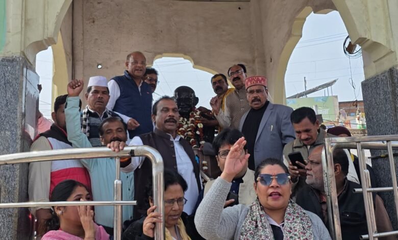 दमोह। जिला कांग्रेस कमेटी के तत्वाधान में शहीद दिवस पर जिला कांग्रेस कार्यालय में राष्ट्रपति महात्मा गांधी का पुण्य स्मरण करते हुए उनके चित्र पर मार्ल्यापण करते हुए जिला कांग्रेस अध्यक्ष मानक पटेल ने कहा कि वर्तमान परिवेश में हमारे देश में दो विचारधाराओ की लड़ाई है एक तरफ हिंसा है तो दूसरी तरफ मोहब्बत भाईचारा है। पूर्व जिला कांग्रेस अध्यक्ष रतनचंद जैन, मनु मिश्रा ने कहा कि जिन बापू ने अहिंसा और लाठी की दम पर देश को आजादी दिलाई हमें स्वतंत्र भारत दिया वहीं केन्द्र में बैठी मोदी की भाजपा सरकार महत्वपूर्ण योजनाओं में से उनका नाम मिठा रही है। वीरेन्द्र दबे, राजेश तिवारी, परम यादव, प्रदीप पटेल, प्रफुल्ल श्रीवास्तव, रजनी ठाकुर, वीरेन्द्र राजपूत, नितिन मिश्रा, बबलू भट्ट, अमर सिंह, कमला निषाद, आशुतोष शर्मा, अमित बुधौल्या, शमीम कुरैशी, अजय जाटव, गीता लोधी, पप्पू कुशवाहा, उवेद गौरी ने भी अपने श्रद्वासुमन अर्पित करते हुए कहा कि महात्मा गांधी व्यक्ति नहीं प्रेरणा है वह भारत देश ही नहीं समूचे विश्व के आदर्श है। भाजपा उनका नाम भले कही मिटा दे किंतु उनकी विचार धारा हमारे दिलो से नहीं मिटा सकती पुनः समस्त कांग्रेसजनों जिनमें हाजी अलीम बिन्दु पटेल, एके चिश्ती, वकील कुरैशी, सनील सिंह, अलीम खान, करण बैन, संजु अहिरवार, गनेश प्रजापति, इनायत अली, सलीम बैटरी, अरविंद सिंह, प्रदीप अहिरवार वरिष्ठो के साथ घंटाघर पहुंचकर गांधी जी की प्रतिमा पर मार्ल्यापण किया।