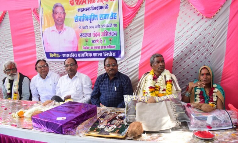 दमोह। शासकीय प्राथमिक शाला लिधौरा में पदस्थ सहायक शिक्षक श्री प्रीतम सिंह अठ़या ने 35 वर्षों की गौरवमयी सेवा पूर्ण करने के उपरांत शनिवार 28 फरवरी 2026 को सेवानिवृत्त हुए। इस अवसर पर विद्यालय परिसर में भावभीना विदाई एवं सम्मान समारोह आयोजित किया गया। समारोह में दमोह विकासखंड शिक्षा अधिकारी बाई.के. कोरी, पटेरा विकासखंड शिक्षा अधिकारी आई.एल. अठ़या, सरदार पटेल संकुल से बाबू प्रभात सिंह राजपूत, सेवानिवृत्त शिक्षक रामचरण राय, सेवानिवृत्त सब इंजीनियर बाबूलाल पटेल,शिक्षक अवध कुमार जैन,शिक्षक राजेश मिश्रा, जन शिक्षक राजेश पांडे, शिक्षक बिहारी लाल अठ़या,शिक्षक कृपाल सिंह आठिया एवं पूर्व सरपंच नरेंद्र अठ़या सहित ग्राम के गणमान्य नागरिक एवं बच्चे उपस्थित रहे। वक्ताओं ने श्री प्रीतम सिंह अठ़या की दीर्घकालीन सेवा, अनुशासन और विद्यार्थियों के सर्वांगीण विकास में उनके योगदान की सराहना करते हुए उन्हें शॉल, श्रीफल एवं स्मृति चिन्ह भेंट कर सम्मानित किया। अंत में सभी ने उनके स्वस्थ एवं मंगलमय जीवन की कामना की तथा स्वल्पाहार के साथ कार्यक्रम का समापन हुआ।