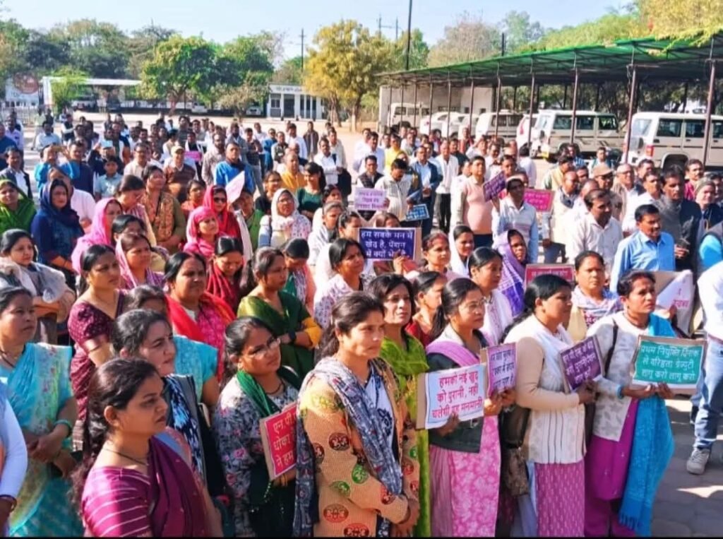 दमोह। आजाद अध्यापक शिक्षक संघ के माध्यम से आज 8 फरवरी को मध्य प्रदेश के प्रत्येक जिलों में एक साथ माननीय मुख्यमंत्री महोदय के नाम ज्ञापन माननीय जिला कलेक्टर महोदय जी को दिए जा रहे हैं इसी श्रृंखला में दमोह में भी संगठन के द्वारा ज्ञापन दिया गया ज्ञापन के पूर्व जिले के प्रत्येक विकास खंडों से सैकड़ो अध्यापक शिक्षक साथी एवं महिला शिक्षक साथी जिला कलेक्ट्रेट के बाहर एकत्रित हुए उपस्थित साथियों के द्वारा अपनी अपनी लंबित मांगों के संदर्भ में उद्बोधन दिए गए एवं एक विशाल रैली निकाल कर मध्य प्रदेश सरकार से निवेदन किया गया की यशाशीघ्र हमारी सभी मांगे यदि पूर्ण नहीं होती है तो आगामी समय में तालाबंदी हड़ताल की जाएगी जिसकी समस्त जिम्मेदारी मध्य प्रदेश सरकार शासन प्रशासन की होगी कार्यक्रम के दौरान अध्यापकों ने एक साथ मोबाइल निकाल कर ई अटेंडेंस ऐप डिलीट किया और कल से अटेंडेंस न लगाने की सामूहिक शपथ ली और जिले के प्रत्येक अध्यापक साथियों से निवेदन किया कि कोई भी साथी अटेंडेंस नहीं लगाएगा तभी हमारी जीत होगी ज्ञापन में निम्न मांगों को रखा गया। अध्यापक शिक्षक संवर्ग को प्रथम नियुक्ति दिनांक से सेवा अवधि की गणना करते हुए पुरानी पेंशन ग्रेच्युटी एवं अवकाशों का नगरीकरण का लाभ दिया जाए एवं क्रमन्नति और समयमान वेतनमान दिया जाए। अध्यापक संवर्गों को केंद्रीय कर्मचारियों की भांति 1 जनवरी 2026 से आठवें वेतनमान का लाभ दिया जाए। अध्यापक संवर्ग के लिए लागू की गई दोषपूर्ण अटेंडेंस व्यवस्था बंद की जाए अन्यथा यह व्यवस्था स्कूल शिक्षा विभाग एवं जनजातीय कार्य विभाग के समस्त कार्यालय के अधिकारियों एवं कर्मचारियों पर भी लागू की जाए। हमारे संपर्क के दिवंगत अध्यापक साथियों के आश्रित परिवार के सदस्य को अनुकंपा नियुक्ति प्रदान की जाए। सितंबर 2022 की हड़ताल अवधि में रोकी गई वेतन का भुगतान तुरंत किया जाए। तीन संतान वाले कर्मचारियों को प्रशासनिक कार्रवाई से मुक्त किया जाए एवं संवर्ग को कैशलेस मेडिकल क्लैंप की सुविधा दी जाए। विगत वर्षों में अध्यापक संवर्ग से सेवा निवृत होने वाले शिक्षकों की सेवा अवधि की गणना प्रथम नियुक्ति दिनांक से करके ग्रेच्युटी का भुगतान किया जाए। हमारे संवर्ग की सेवा निवृत्ति आयु 65 वर्ष की जाए एवं अन्य वरिष्ठ कार्यालय की तरह स्कूलों में भी शनिवार का अवकाश दिया जाए इसके अतिरिक्त हमारे संवर्ग की अन्य सभी लंबित मांगे यथाशीघ्र पुरी की जाए। ज्ञापन के कार्यक्रम में संवर्ग के प्रदेश उपाध्यक्ष देवेंद्र यादव जिला अध्यक्ष मुकेश सराफ जिला उपाध्यक्ष सुनील सोनी जिला कार्यकारी अध्यक्ष अभय भट्ट महेंद्र दीक्षित ताहिर खान सुरेंद्र चौबे ब्लॉक अध्यक्ष उमेश तिवारी रोहिणी प्रसाद दिलीप 
