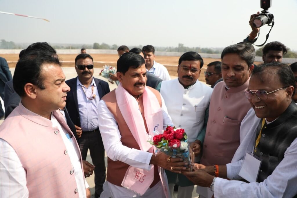 मुख्यमंत्री डॉ. मोहन यादव हेलीकॉप्टर से पहुंचे दमोह जिले के ग्राम देवरी हरदुआ हेलीपेड जनप्रतिनिधियों ने किया आत्मीय स्वागत