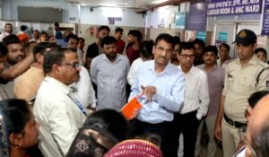कलेक्टर प्रताप नारायण यादव आज प्रात: 10 बजे जिला चिकित्सालय पहुँचे और स्वास्थ्य व्यवस्थाओं का गहन रूप से जायजा लिया। विभिन्न वार्डों के साथ ही दवा वितरण केन्द्र एवं एमसीएच भवन पहुँचे, यहां पर मौजूद महिलाओं से व्यवस्थाओं के सबंध में संवाद किया। उन्होंने महिलाओं से उनके ओपीडी पर्ची की जानकारी ली, कितने समय के इंतजार के बाद आपको यहां से ओपीडी पर्ची मिल जाती हैं। कलेक्टर श्री यादव ने सिविल सर्जन डाँ प्रहलाद पटेल से कहा महिलाओं को अनावश्यक इंतजार ना करना पड़े, उन्हें ओपीडी पर्ची शीघ्र मिले और यहां पर महिलाओं के बैठने के लिए बैंच आदि की व्यवस्थाए सुनिश्चित की जाए।